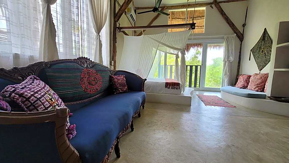 The family room provides air conditioning, a private entrance, a terrace with garden views as well as a private bathroom featuring a shower. The unit offers 2 beds.